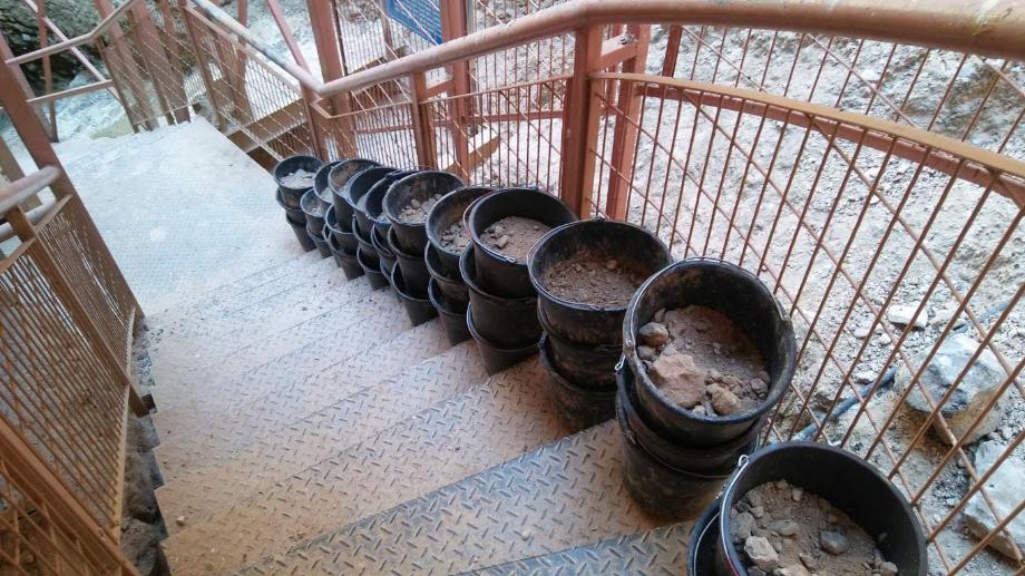 מתקרבים. הארכיאולוגים אפילו מבקשים עזרה מהמבקרים - מתנדבים ממלאים דליים